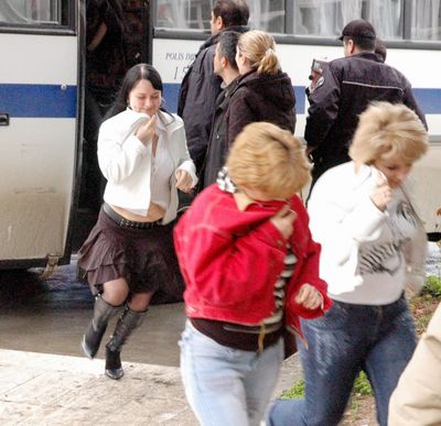 Çömlekçi ve Değirmendere mahallerindeki otellerde yaşları 20-40 arasında değişen ve 12'si suçüstü olmak üzere toplam 30 yabancı uyruklu hayat kadını dün akşam düzenlenen operasyonla Trabzon Emeniyet Müdürlüğü binasına getirildi.