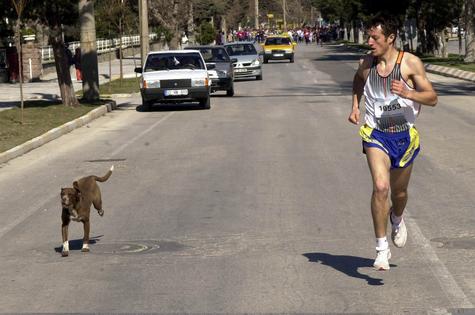 Köpekten korkan milli atlet halk koşusunda peşine köpek takılınca rakiplerinin önünde açı ara birinciliği elde etti. İşte o ilginç yarışma!
