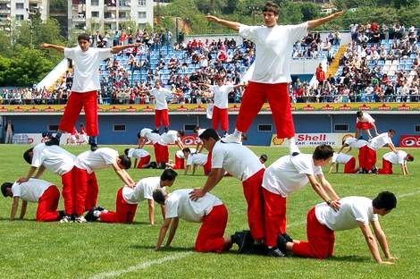 19 Mayıs Atatürk'ü Anma Gençlik ve Spor Bayramı'nın 89. yıldönümü kutlama töreninde, Orta dereceli okul öğrencilerin oluşturduğu karma grubunun sergiledikleri gösterilerin ardından halk oyunları grupları gösterisinin sunumuyla devam etti.