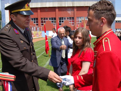 Yarışmalarda dereceye giren öğrencilere ödüllerini, Kaymakam Sezgin, Garnizon komutanı Şahin ve Belediye Başkanı Hatırnaz birlikte verdiler.