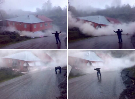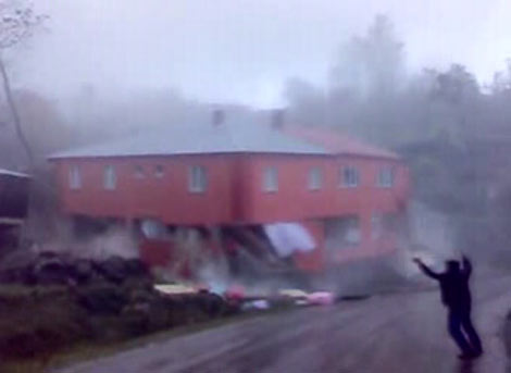 Kameraya yansıyan bu anda, Çırakman Asan'ın feryatları arasında iki katlı ev birkaç saniye içinde yerle bir oldu.