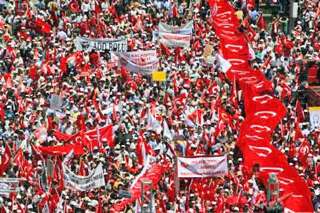 Atatürkçü Düşünce Derneğinin öncülüğünde yapılan Cumhuriyet Mitingi Ankara'da Tandoğan'dayapıldı.