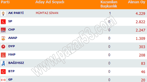 2004'de Rize ve ilçelerindeki oylar