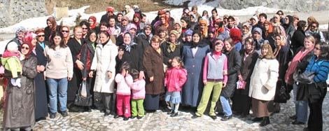 Rize Belediye Başkanı Halil Bakırcının eşi Reyhan Bakırcının da katıldığı yaklaşık 120 kişilik bir gurupla Ayder'e giden bayanlar önce kartopu ardından tulum ve kemençe eşliğinde horon oynadılar.