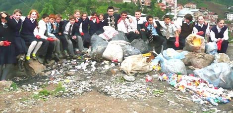 Rize'nin Çamlıhemşin ilçesi Topluca Köyü İlköğretim Okulu öğrencilerinin çevre duyarlılığına dikkat çekmek amacıyla başlattıkları çöp toplama kampanyası herkesin takdirini kazandı.