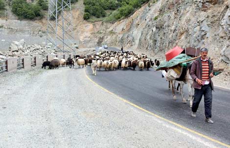 Artvin merkeze bağlı Seyitler köyünden koyunları ile birlikte yola çıkan Hüseyin Çamer (43) isimli çoban Şavşat ilçesine bağlı Birbilan Yaylası'na gitmek için Artvin-Erzurum karayolunu kullanıyor.