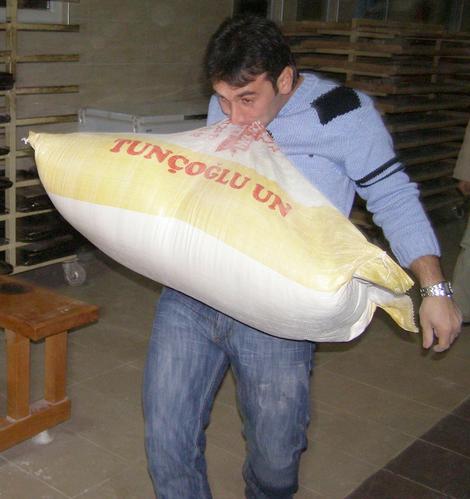 Artvin'in Borçka ilçesinde yaşayan Özcan Navdar, dişleriyle 50 kiloluk un çuvalını kaldırarak herkesi şaşırttı.
