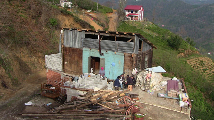 İçindeki eşyaları ile birlikte evi 50 metre uzaklıkta bulunan bir başka alana taşınması sırasında çevredekiler çep telefonuyla bu görüntüleri kaydetti.