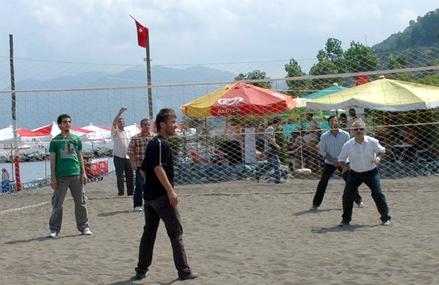 Basın açıklamasının ardından Başkan Çakır, basın mensuplarıyla birlikte plajda voleybol oynadı.