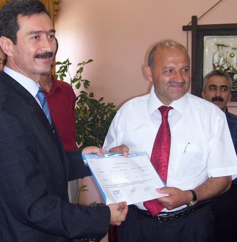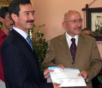 AK Parti'den Rize milletvekili seçilen Bayram Ali Bayramoğlu ve Dr. Lütfi Çırakoğlu mazbatalarını Rize İl Seçim Kurulu Başkanı Kenan Hasdemir'den aldı.