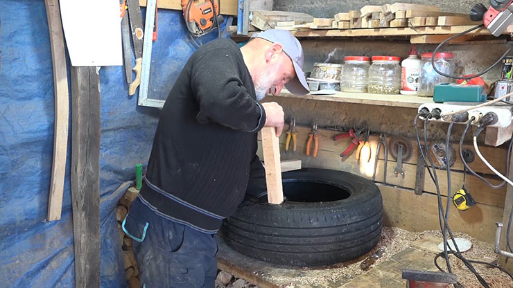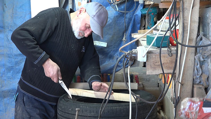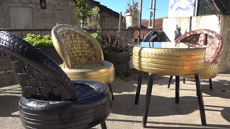 Tekerleği aldı, 4 yerini bıçakla keserek ahşap ayak yerleştirdi. İlk olarak oturak kısmını tamamladığı araç tekerleğinden sandalye için birde yaslanma yeri yaptı. Canım, Atıl durumdaki tekerlekleri böylelikle geri dönüştürmüş oldu. Canım şimdi ise kendi elleriyle yaptığı koltuk ve masa takımında komşularını ağırlamanın gururun yaşıyor.