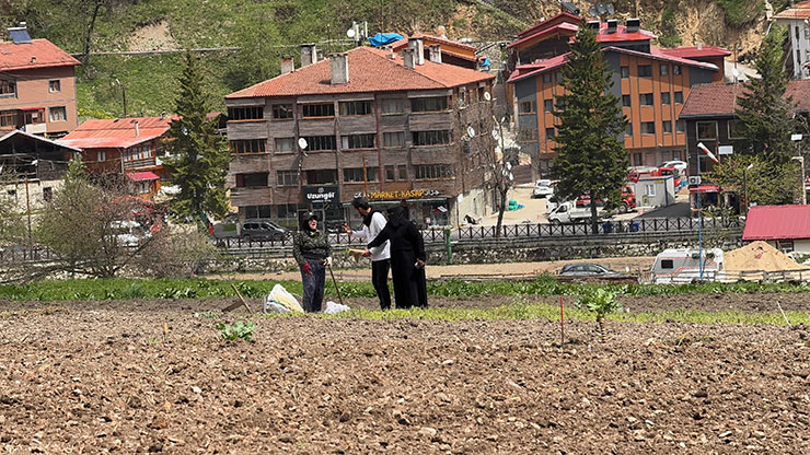 TRABZON (İHA) - Trabzon’un dünyaca ünlü turizm merkezi Uzungöl'ü gezmeye gelen Arap turistler tarlada mısır eken vatandaşlara hurma dağıttı, tarla belleyerek yerel halka yardımcı oldu.