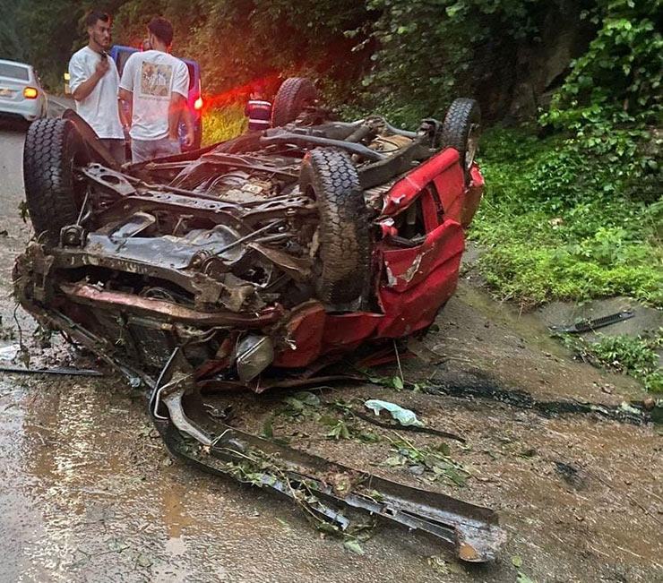 Yüzlerce metrelik uçurumdan yuvarlanan kamyonet, Ardeşen-Çamlıhemşin karayoluna düştü. Kazada, tamamen hurdaya dönen araçtan sağ kurtulan yolcunun, vücudunun çeşitli yerlerinde kırıklar oluştu.