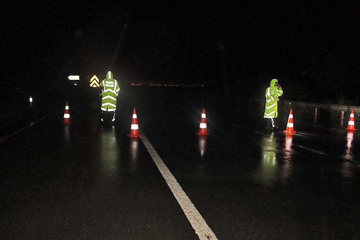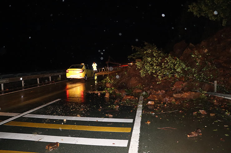 Heyelan nedeniyle yol trafiğe kapanırken, yolda geniş çapta güvenlik önlemleri alındı. O esnada bölgeden geçen 3 araç da heyelan nedeniyle zarar gördü. Araçlar çekici vasıtası ile bölgeden alındı.