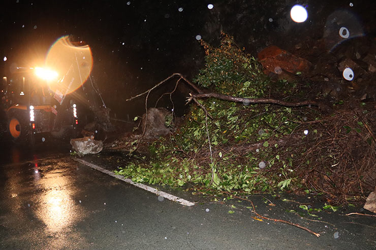 Rize’de şiddetli yağışlar nedeniyle meydana gelen heyelan nedeniyle Artvin-Rize karayolu tek yönlü olarak trafiğe kapanırken, 3 araç heyelanda zarar gördü.