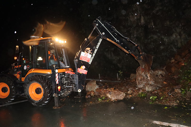 Karadeniz Sahil Yolu’nda meydana gelen heyelanda Rize’den Artvin istikametine giden yola yamaçtan kopan kayalar düştü.