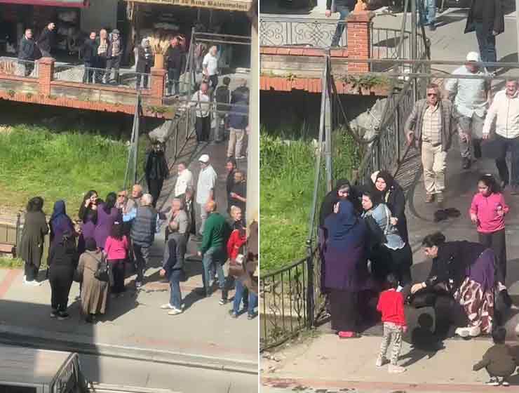 Kavga eden kadınların yanında bulunan çocuklar ise korkudan ağlamaya başladı. O anlar cep telefonu kameralarıyla anbean kaydedildi: