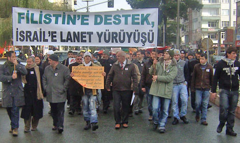 Filistin liderlerinden Şeyh Ahmet Yasin'in duasını okuyarak vatandaşları coşturan Varelci, "Filistin davası insanlığın ortak davasıdır. Siyonist devlet İsrail,