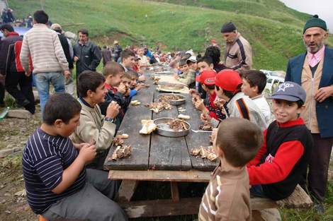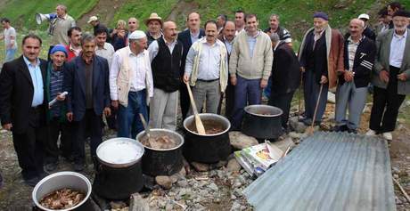 Artvin'de asırlardır kesintisiz devam ettirilen gelenekle 10 büyük , 10 küçükbaş hayvan kurban edilerek, etleri 22 kazanda pişirilip dağıtılıyor.