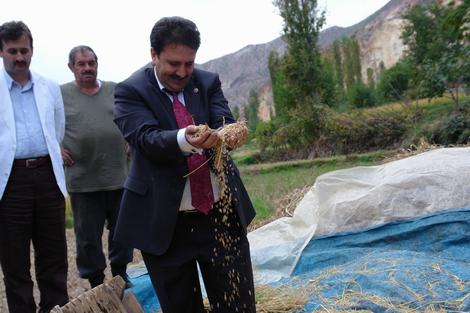 Bayram tatilini Yusufeli'de geçiren AK Parti Milletvekili Ertekin Çolak, Tekkale köyünü ziyareti sırasında tarlada pirinç dövenleri de ziyaret etti. Vatandaşlarla bayramlaşan milletvekili Çolak, yörede karık adı verilen yerde orakla ürün biçti, desteleri döverek , sapla pirinçleri ayırdı. Milletvekili Çolak, bu arada üreticilerin sorunlarını da dinledi. Milletvekili Çolak, pirincin zor şartlarda elde edildiğini belirterek “Tarım, zor ve zevkli bir iştir. Pirinç 4 ay önce dikiliyor ve şimdi yetişiyor. Üreteciler olmasa bizler ne yiyeceğiz. Onun için hükümet olarak onların destekliyoruz. İşte alın teri. Bayramda bile çalışıyorlar. Benden bir isteğiniz olursa emrinizdeyim” dedi.