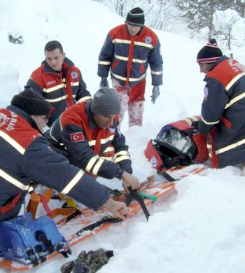 Paletli ambulans içinde acil durumlara müdahale etmek için tüm araç ve gereçlerin mevcut olduğunu anlatan Hacı Cesim, şöyle konuştu: "Çığ altında kalan bir şahsı kurtarmak için 112 kurtarma timi görev aldı. Vaka yerine yarım saatte ulaştık ve 3 dakika içinde şahsı ambulansa aldık. Ancak, ambulansımız zor doğa şartlarından dolayı kara battı. Kepçe yardımıyla araç battığı yerden çıkarılabildi. Zor şartlar tatbikatla gözler önüne serildi."