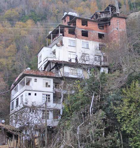 Arazi yapısı nedeniyle farklı bir inşaat tekniği kullandıklarını ifade eden Kırdar "Evin temelini dere kenarından atmaya başladık ve yamaca doğru kat kat çıktık. Ortaya 11 katlı bina çıktı. Evin en üst katına çıkmak için evin içindeki merdivenleri kullanıyoruz. 11. kata ise inekleri yerleştirdik. Buzağı iken hayvanları çıkarmak kolay oluyordu ancak şimdi onları teleferikle 11. kata çıkartıyoruz" dedi.
