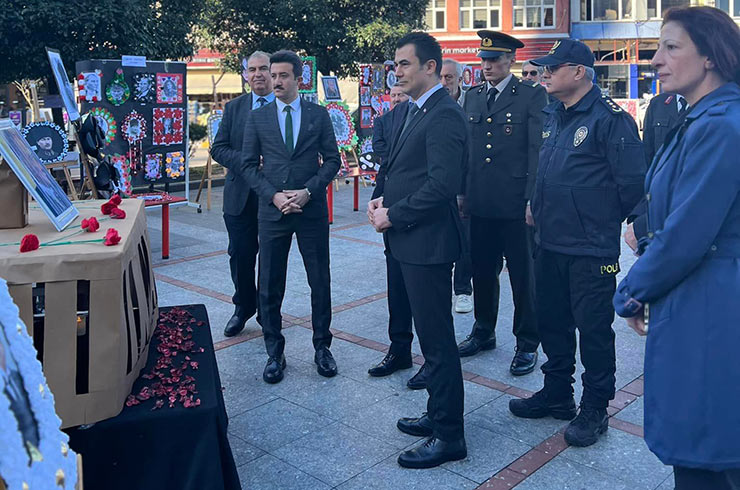 Tören saat 09.05’i gösterdiğinde tüm şehirde çalan sirenlere saygı duruşuyla ve ardından okunan İstiklal Marşı ile devam etti.