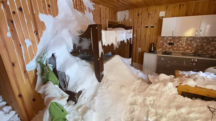 Çığ nedeniyle iki işletme ve bir inşaat firmasına ait iki konteynerde hasar oluştu. Oluşan hasarın boyutu, ekipler ve vatandaşların birlikte yürüttüğü kar temizleme çalışmaları ile ortaya çıkmaya başladı. Vatandaşlar ve işletme sahibi, odaların içine kadar giren kar kütlesini temizledi.