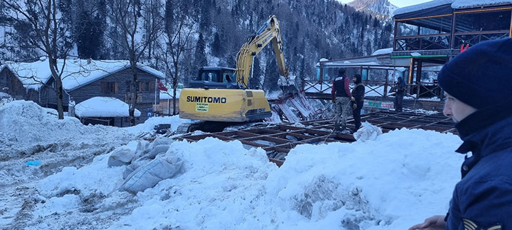 RİZE (İHA) - Cumhurbaşkanı Erdoğan'ın imzasıyla Doğal Sit Alanı "kesin korunacak hassas alan" olarak ilan edilen Ayder Yaylası'nda kamulaştırılan binaların yıkımına başlandı.