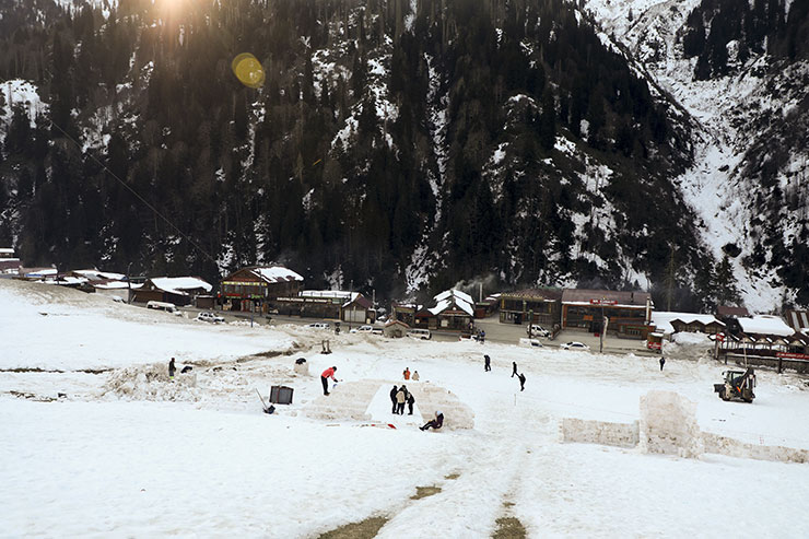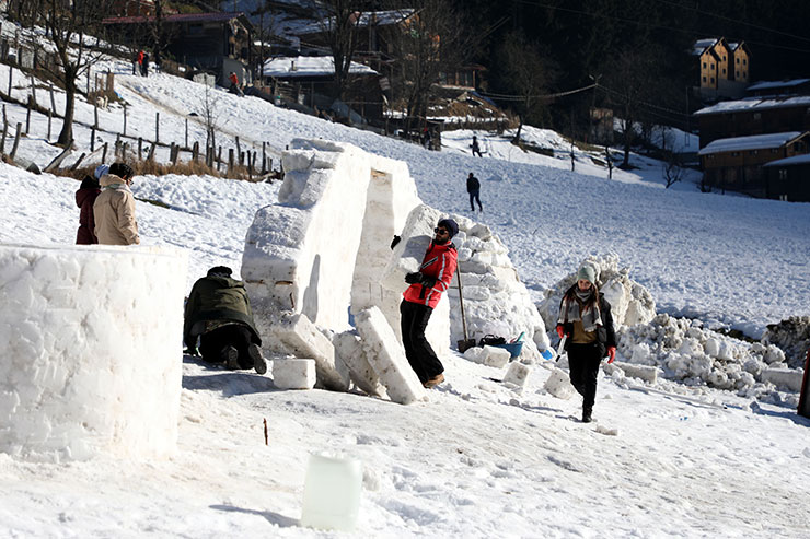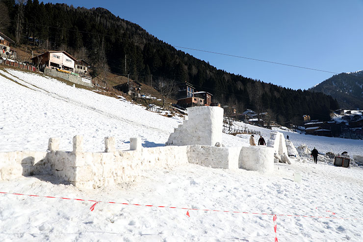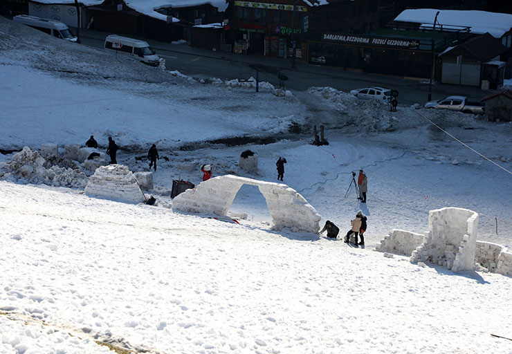 Karın erimesinin önlerine engel olarak çıktığını vurgulayan Zararsız, "Kar olmadığı için biraz tereddüde düştük ama yolumuzdan vazgeçmedik. Belediye ve Özel İdare ekiplerinin gayreti ile yaylalara yakın bölgelerden kamyonlarla kar taşıma suretiyle yapıları yapmaya başladık." dedi.