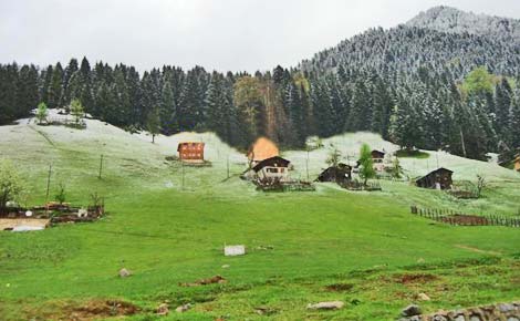 Rize'de hava sıcaklığının mevsim normallerinin altına düşmesiyle kar da yüzünü gösterdi. Mayıs ayında yeşilin tüm tonlarıyla kendini gösterdiği Çamlıhemşin ilçesi Ayder yaylasında kısa süreli kar yağışı bir başka güzelliği ortaya çıkardı.