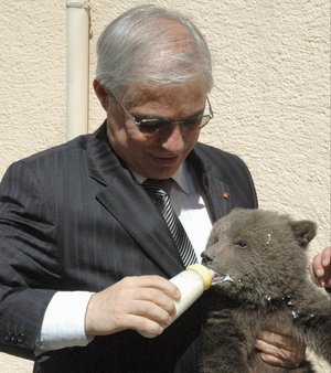 Rize'de köylüler tarafından bulunan ve koruma altına alınan ayı yavrusunu kucağına alarak seven Vali Kasım Esen, yavru ayıya biberonla süt içirdi.