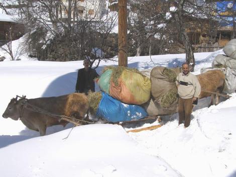 İsmail Yazan, Kemal Tekgümüş, Mehmet Kaya,Asım Mısırlıoğlu ve Yaşanur Taştan isimli üreticiler, öküz ve kızak sayesinde ihtiyaçlarını giderdiklerini belirterek, "Kızağa bağlanan hayvanımız, bizim hem taksimiz hem de kamyonetimizdir. Bu bizim teknoloji ürünümüzdür tarım alanlarımız karla kaplandı. Bu nedenle tarlalarımıza hayvan gübresini serpmemiz gerekiyor ama ne yapalım, şimdilik karların üstüne bırakıyoruz kar erdiğinde toprakla buluşur ve bu arada işimizi de kolaylaştırmış oluruz. Mahallemizin her amaçla kullandığımız aracımız işte bu hayvanlar,y az mevsiminde tarla koşarız, odun, gübre, ot ve odun taşırız, boğa güreşlerine katarız ve bazen de etini yeriz" diye konuştu.