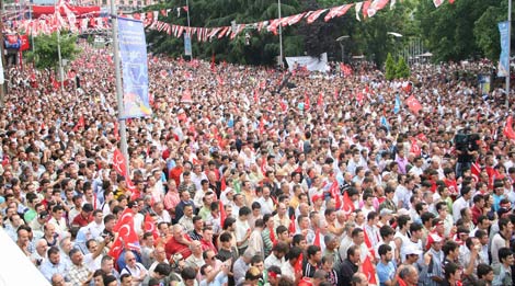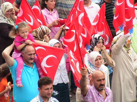 Miting alanındaki Trabzonspor bayrakları dikkatlerden kaçmadı. Bordo-mavili bayrağın siyasi bir mitingde kullanılması ise yadırgandı.