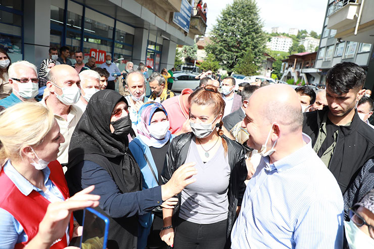 İçişleri Bakanı Süleyman Soylu selden zarar gören Arhavi halkına hitap etti