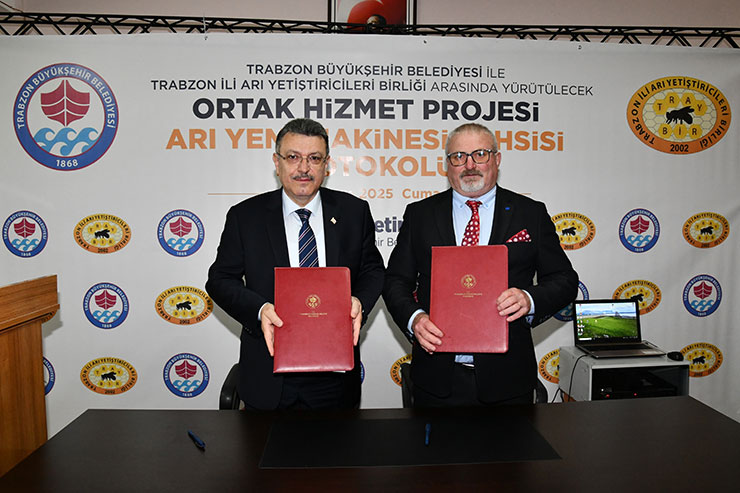 Büyükşehir Belediye Başkanı Ahmet Metin Genç ve Trabzon Arı Yetiştiricileri Birliği Başkanı Yusuf Aksoy arasında imzalanan protokol ile Arı Yemi Makinesi Tahsisi gerçekleştirildi. Başkan Genç, üretimin önemine dikkat çekerek, "Öyle bir zaman diliminden geçiyoruz ki, ne kadar üretirsek o kadar güçlüyüz. Dört sene önce pandemiyle karşı karşıya kaldık, her taraf durdu ve ürettiğimize baktık. Ambarda ne var? Onun için üretim hem ülkemizin ekonomisi için hem de kendi hayatımız için en önemli işlerimizden bir tanesi. Arı yetiştiriciliği ve bal üretiminin hem yöre ekonomisi hem insanlarımızın hayatı hem de ülke ekonomisi açısından çok çok önemli olduğunun farkına varmamız lazım. Biz de göreve gelir gelmez Tarım Daire Başkanlığı'nı kurduk. Yöremizde hangi alanda olursa olsun üretime destek olacağımıza dair söz verdik. Bunları seçimden önce de söz vermiştik. Bu sözleri havada kalsın, siyaset yapalım ve oy alalım diye vermedik. Hayata geçirebilelim, insanımıza, üreticimize ve çiftçimize destek olalım diye söz verdik. Çok şükür bugün o sözlerden bir tanesini tutmanın mutluluğunu yaşıyoruz" dedi.
