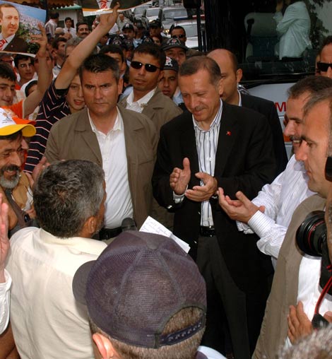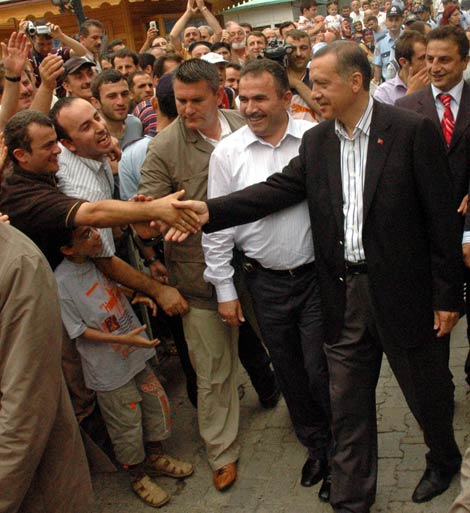 Merkez Mahallesi'ndeki evinden çıkarak ilçe merkezinde hemşehrileriyle görüşen Başbakan Erdoğan, Bekir Hocaoğlu isimli yerel şairin kendisi için yazdığı şiiri dinledi.