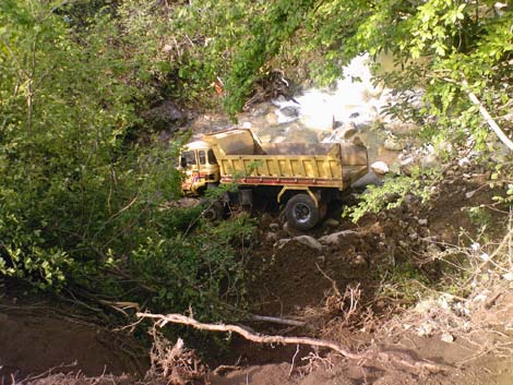 Pazar Belediyesi'ne ait kamyon, Tomaslı Su Projesi için bulunduğu Ortayol köyünde, manevra yaparken dereye yuvarlandı...