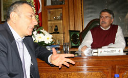 Ziyarette Ağan ve Kazmaz el sıkışarak birbirlerine başarılar diledi.
