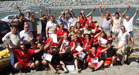 Ardeşen Kaymakamı Cahit Işık Özel İdare Müdürü Dursun Yaşaroğlu ve diğer yetkilileri bulunduğu ekip ile raftingçiler toplu hatıra fotoğrafı çektirdiler. (Yasin BAŞALMAZ)