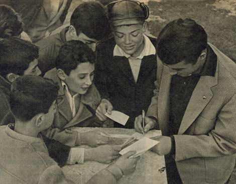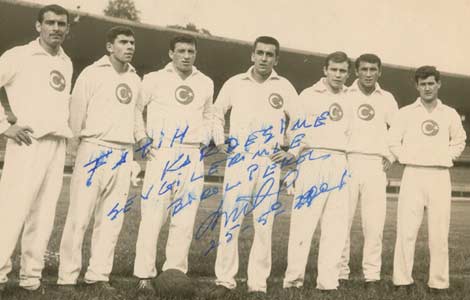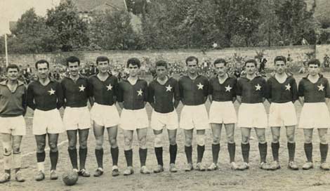 Birol Peker (soldan dördüncü) ve Şenol Birol (soldan altıncı) İskoçya maçı öncesi Milli Takım kampında. 3 Haziran 1960.