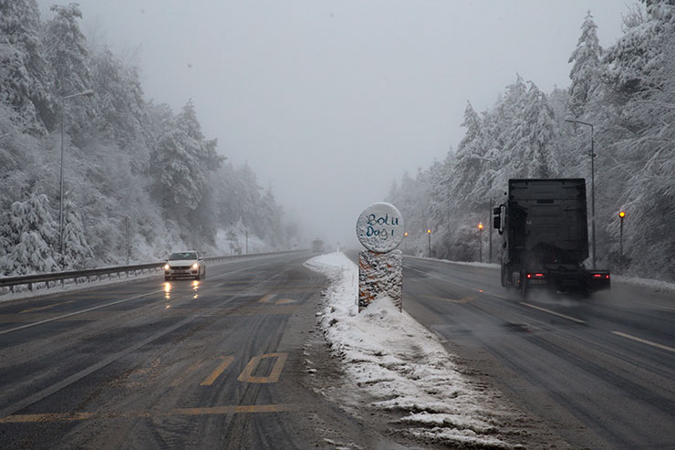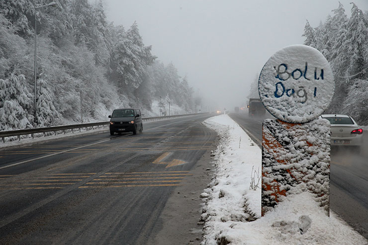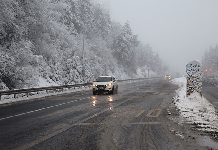 BOLU (AA) - D-100 kara yolunun Bolu Dağı kesiminde kar yağışı etkisini gösteriyor.