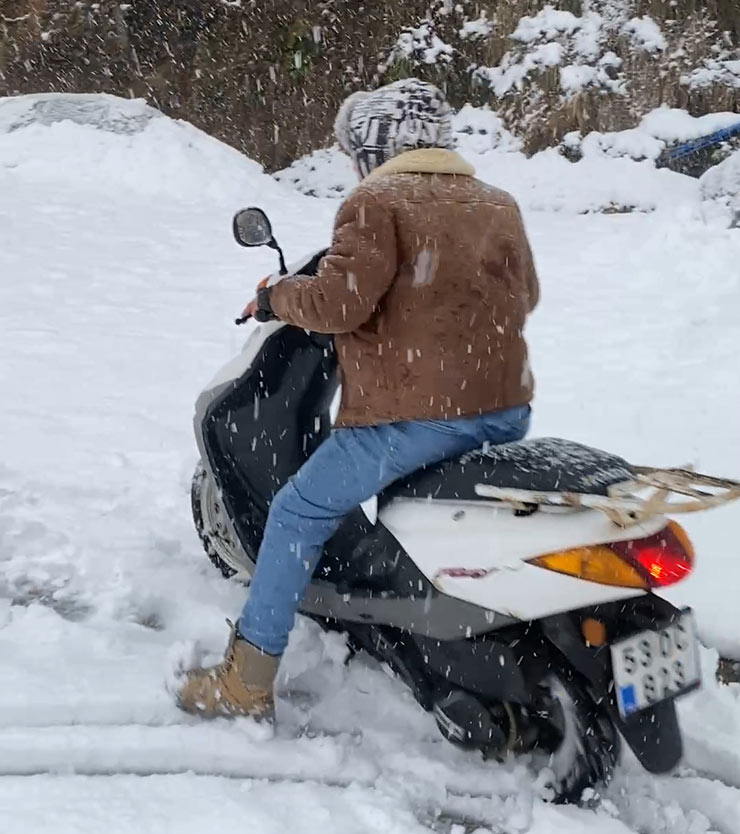 Çakır, bu yıl Rize'yi etkisi altına alan kar yağışı nedeniyle motosikletini kullanamayınca bu durumdan aşırı rahatsız oldu.