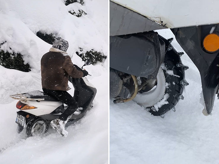 Rize'de yaşayan ve araçlar üzerinde yaptığı icatlarla tanınan genç bu kez motosikletiyle karda gezebilmek için motosikletine kış tekerleği tasarladı.