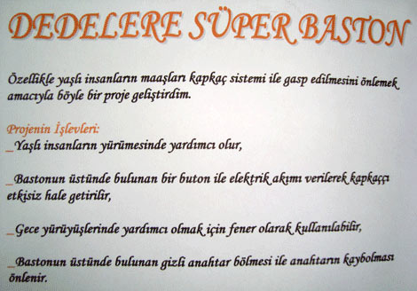 7/C sınıfı öğrencilerinden Emre Tafralı'nın Dedelere Süper Baston ve Elektronik Perde" tasarımları en çok ilgi çeken projeler oldu.