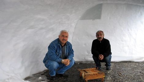 İsmet KÖSOĞLU - 2 bin 640 metre rakımlı Ovit Dağında yol açma çalışmaları devam ediyor. Zor şartlarda görev yapan karayolları ekiplerinin geçici barınma amacıyla dozerle açtıkları buzul mağaralar akıllara kutupları getiriyor.