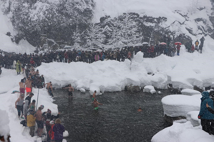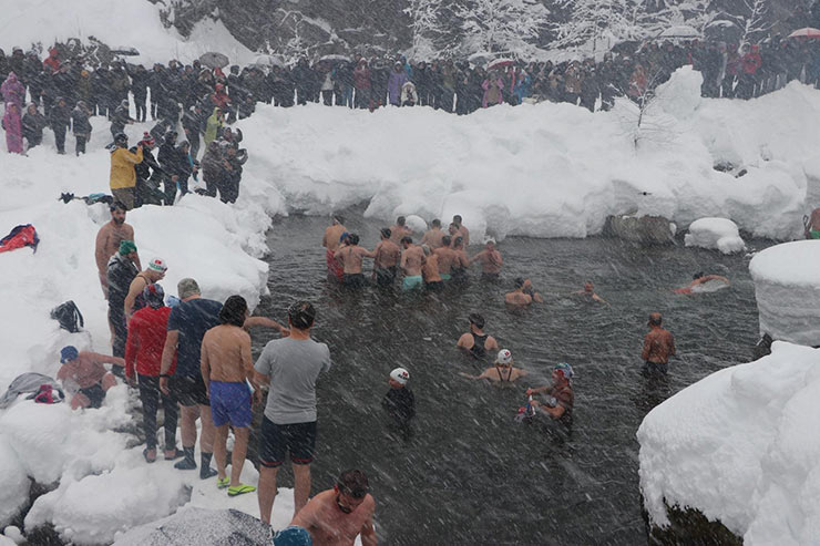 RİZE (İHA) - Rize'nin Ardeşen ilçesine bağlı Deremezra köyü Neknari mevkisinde bu yıl 9'uncu kez düzenlenen Kış Yüzme Şenliği, yoğun bir katılımla gerçekleşti.