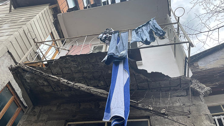 Çamaşır asmak için evinin balkonuna çıkan kadın balkonun çökmesi sonucunda 4 metrelik mesafeden düşerek yaralandı.