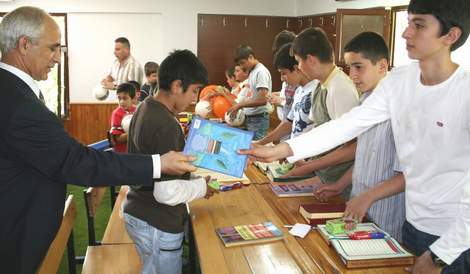 Daha sonra Rize Belediye Başkanı Halil Bakırcı ile İl Müftüsü Zeki Sayar eğitim gören çocuklara kitap, top, balon ve çikolata dağıttılar.