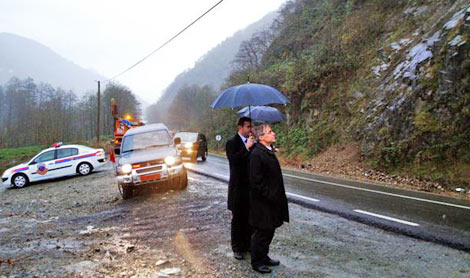Bu arada, merkez valiliğine atanan Rize Valisi Kasım Esen, veda ziyareti için gittiği ilçelerden dönerken toprak kaymasını görerek, yetkililerden bilgi aldı.
